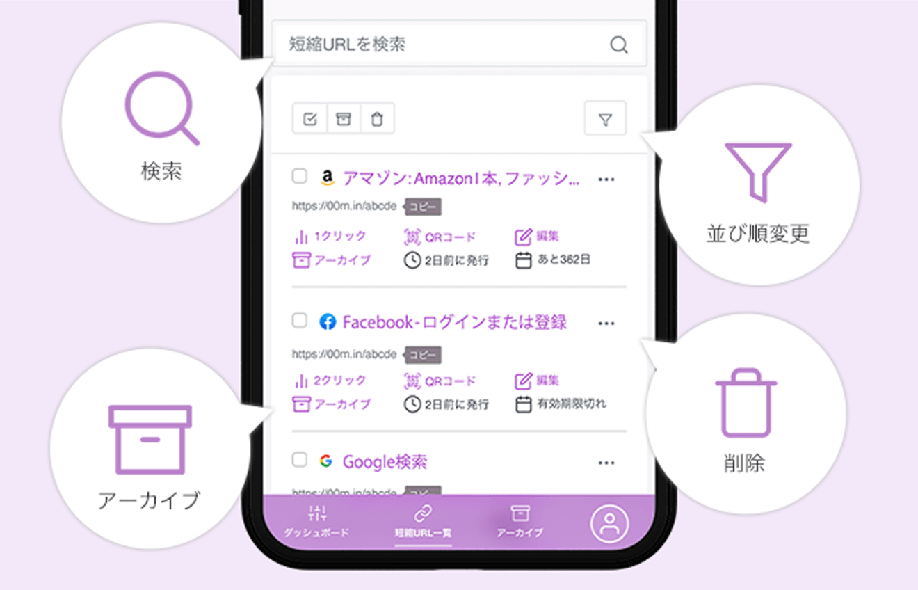 発行したURLは一覧で管理。似たようなURLでもメモ機能で、管理が簡単!