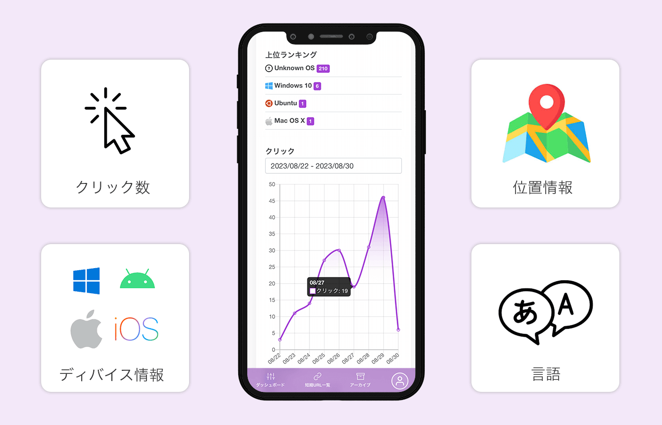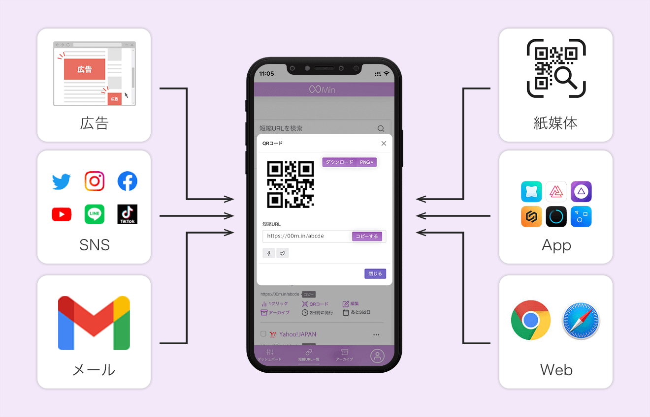 短縮URLのクリック数はもちろん、QRコードからのアクセス数も把握!